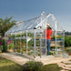 • Crystal clear virtually unbreakable polycarbonate roof and walls panels that provide 100% UV protection and over 90% light transmission directly onto plants