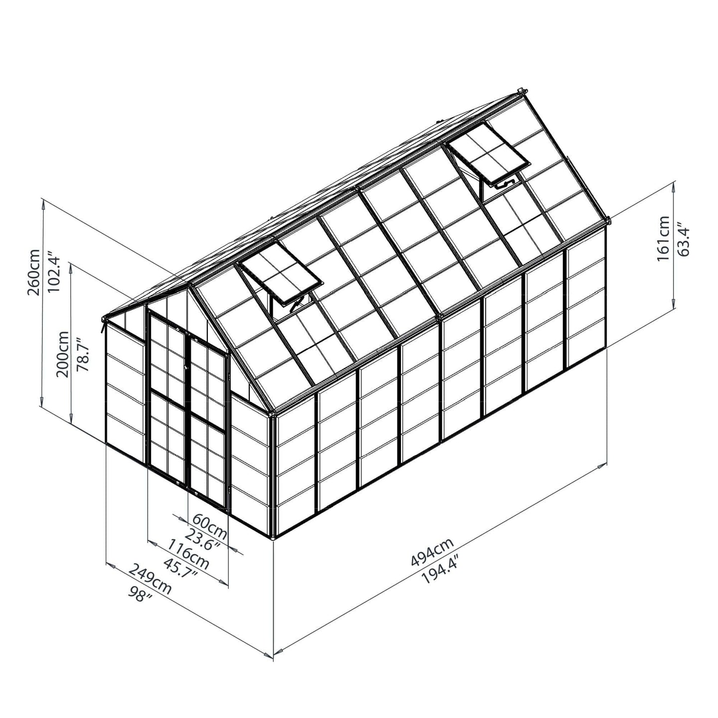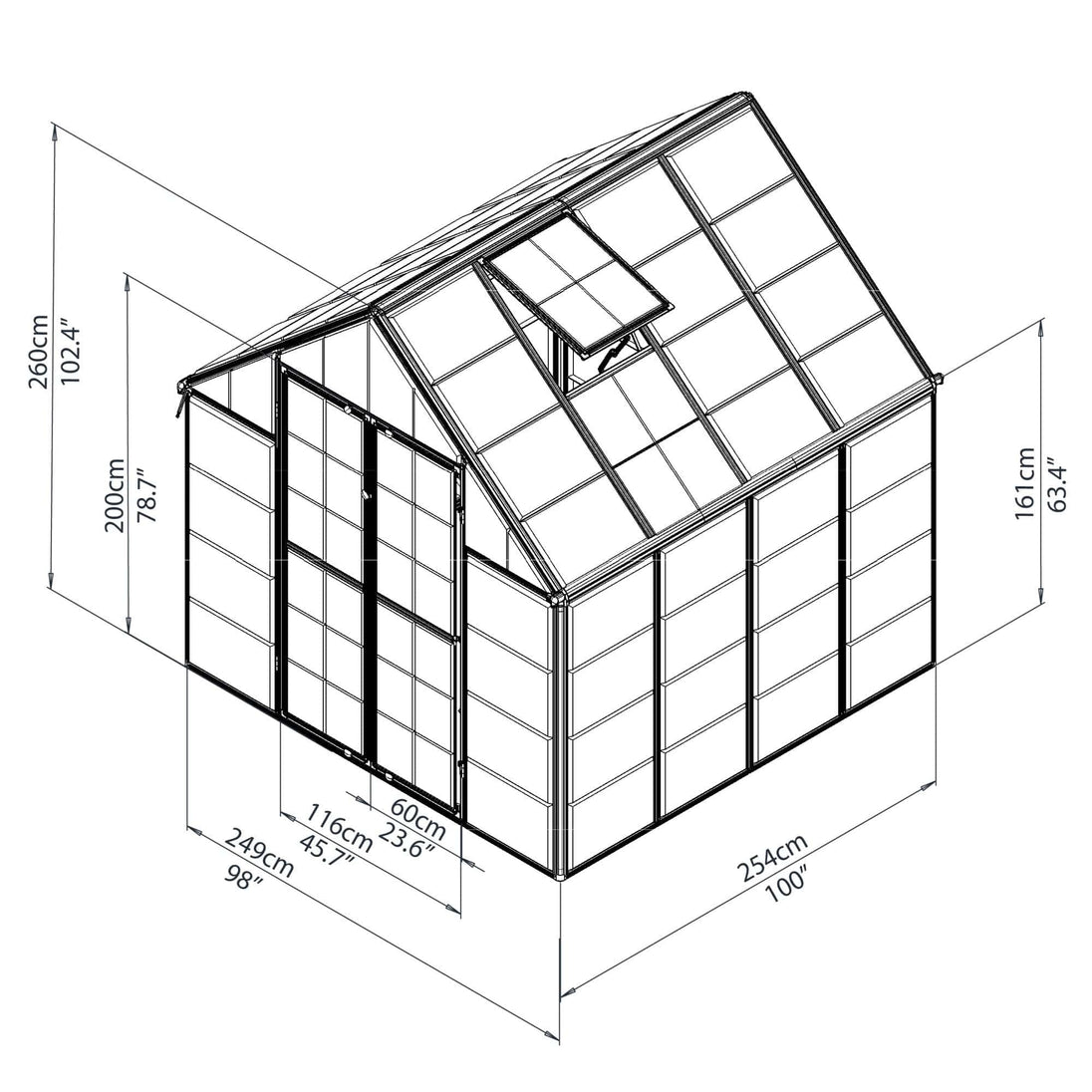 Palram - Canopia | Snap & Grow Greenhouse Kit - 8 Ft Wide - Silver With 0.8mm Polycarbonate Glazing