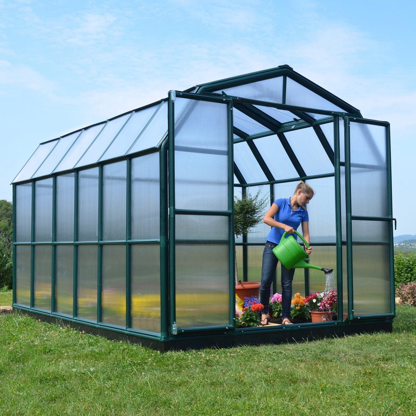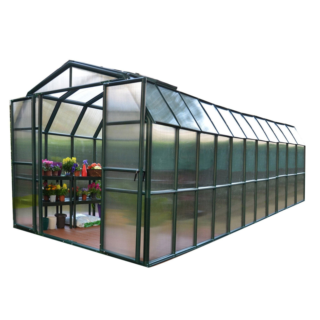 Palram - Canopia | Grand Gardener Greenhouse Kit - 8 Ft Wide - Green - 6mm Twin-wall Polycarbonate Glazing