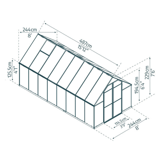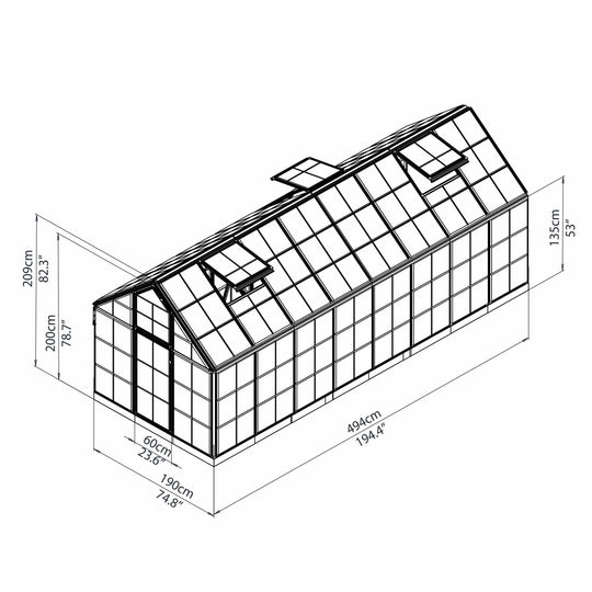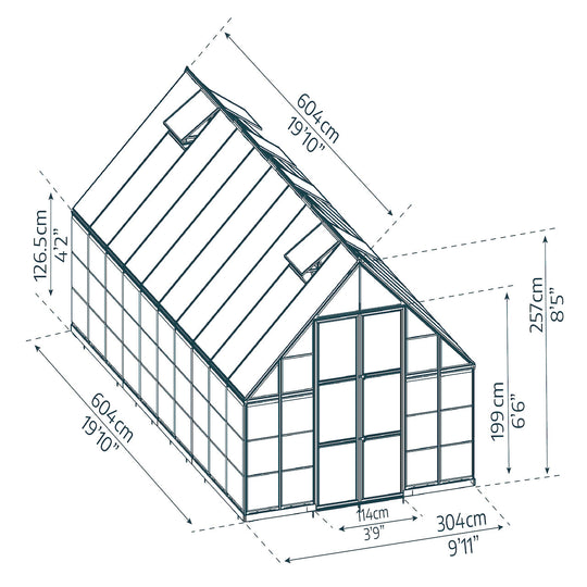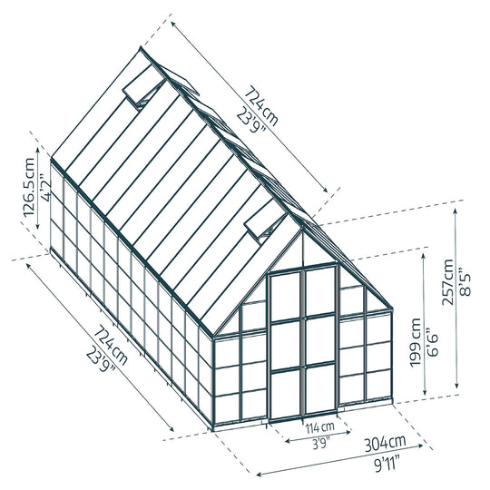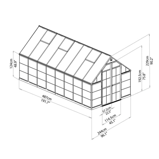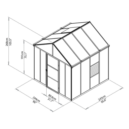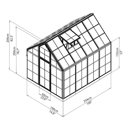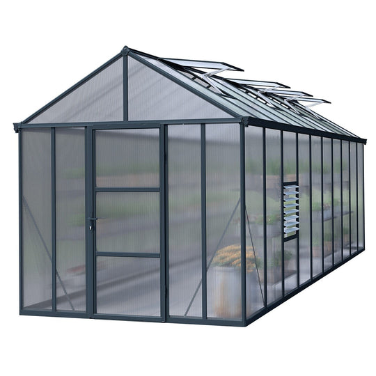 Palram - Canopia | Glory Premium Greenhouse Kit 8 Ft Wide - Gray With 10mm Twin-wall Polycarbonate Glazing