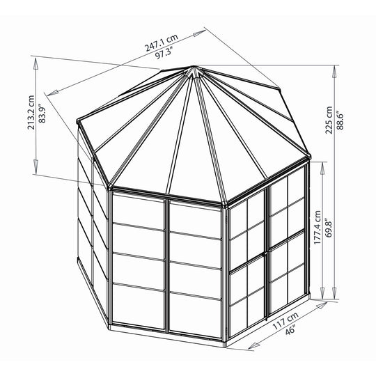 Palram - Canopia | 7x8 Ft Oasis Hex Greenhouse Kit - Gray With 0.8mm Polycarbonate Glazing