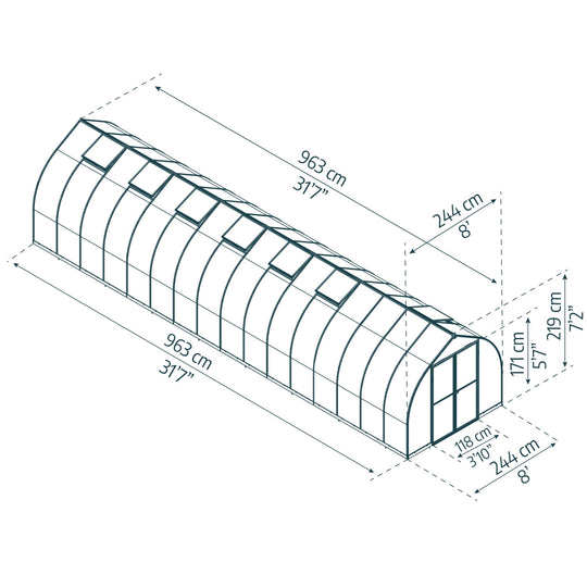 Palram - Canopia | Bella Greenhouse 8 Ft Wide - Silver With 6mm Twin-wall Polycarbonate Glazing