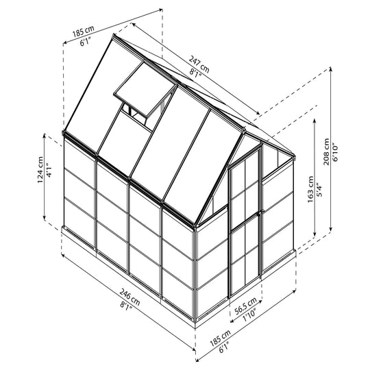 Palram - Canopia | 6x8 Ft Hybrid Greenhouse Kit - Gray With 0.8mm Polycarbonate Glazing