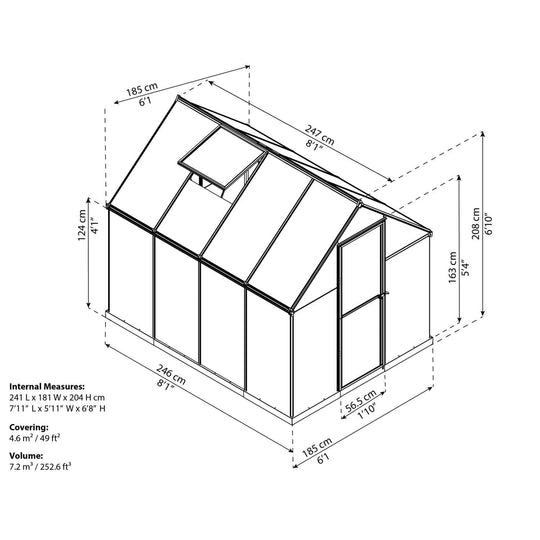 Palram - Canopia | 6X8 ft Hybrid Greenhouse Kit - Green With 0.8mm Polycarbonate Glazing