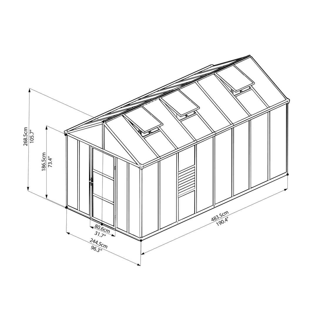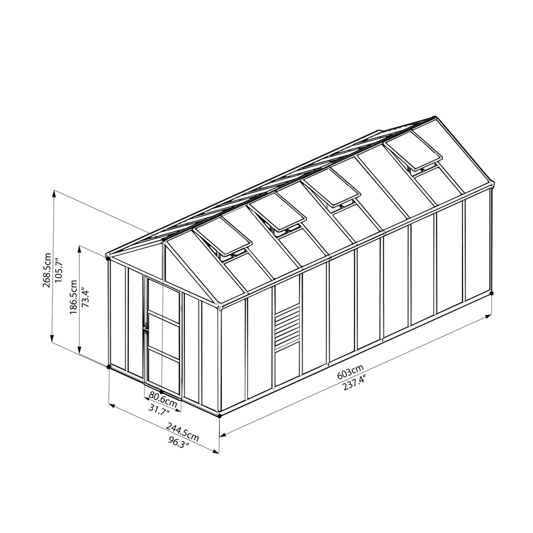 Palram - Canopia | Glory Premium Greenhouse Kit 8 Ft Wide - Gray With 10mm Twin-wall Polycarbonate Glazing
